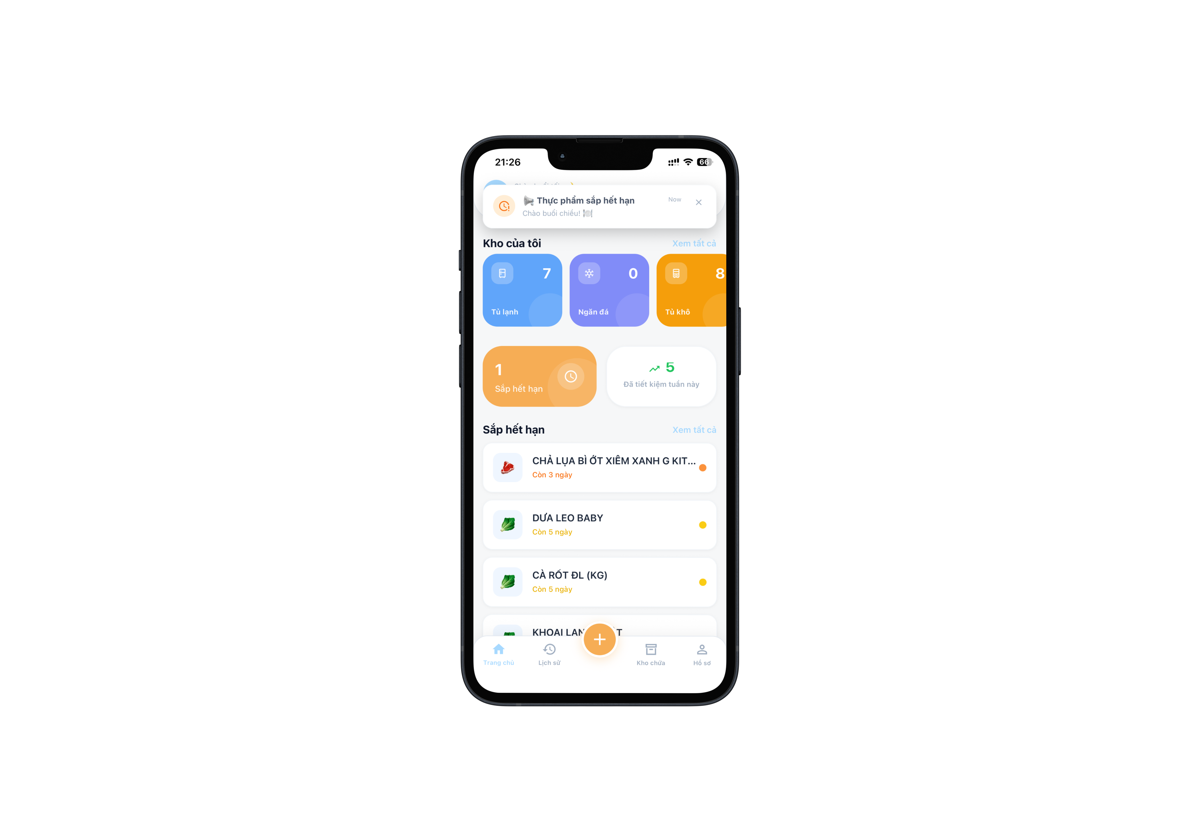 Nhận thông báo kịp thời trước khi thực phẩm hết hạn để không bao giờ bỏ lỡ